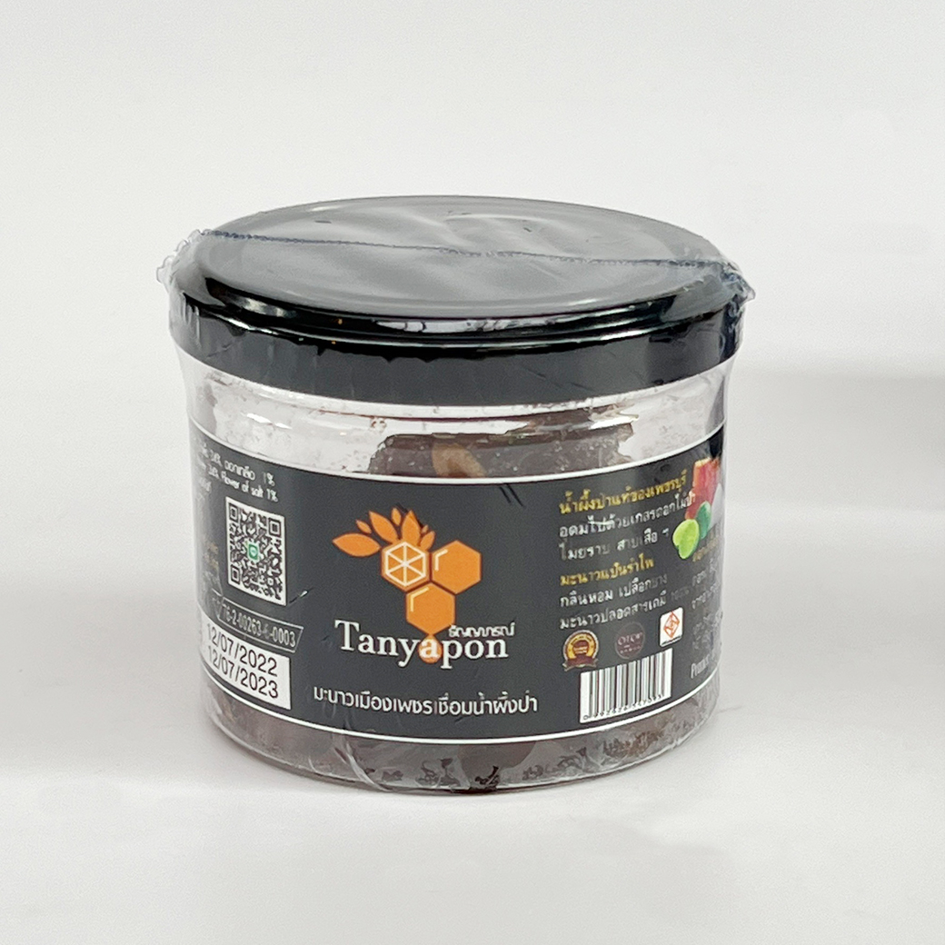 มะนาวเมืองเพชรเชื่อมน้ำผึ้งป่า จะชงด้วยน้ำอุ่น หรือชาก หรือรับประทานได้ทันที น้ำหนัก 50 กรัม